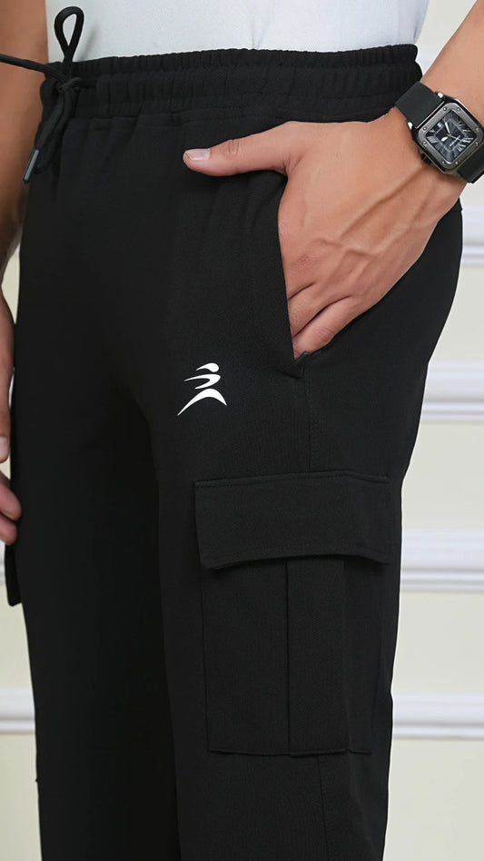 Pocket Lightweight Black Cargo Trackpant For Men
