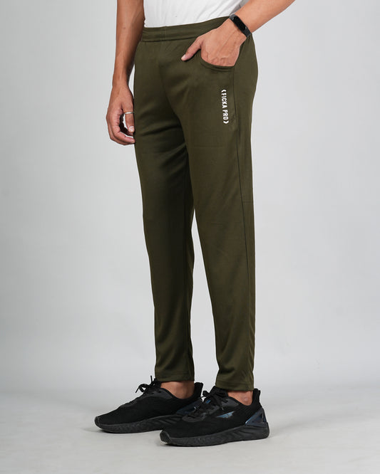 Men Solid Relax Fit Olive Joggers with FickaPlus