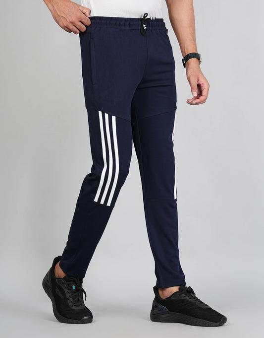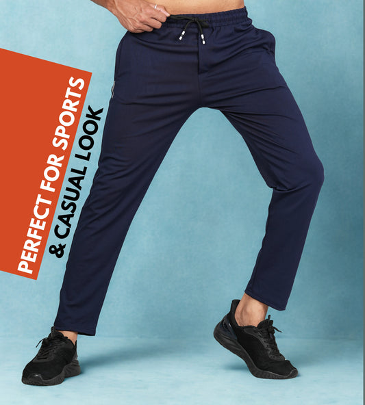 Men Solid Relax Fit Navy Blue Joggers with FickaPlus