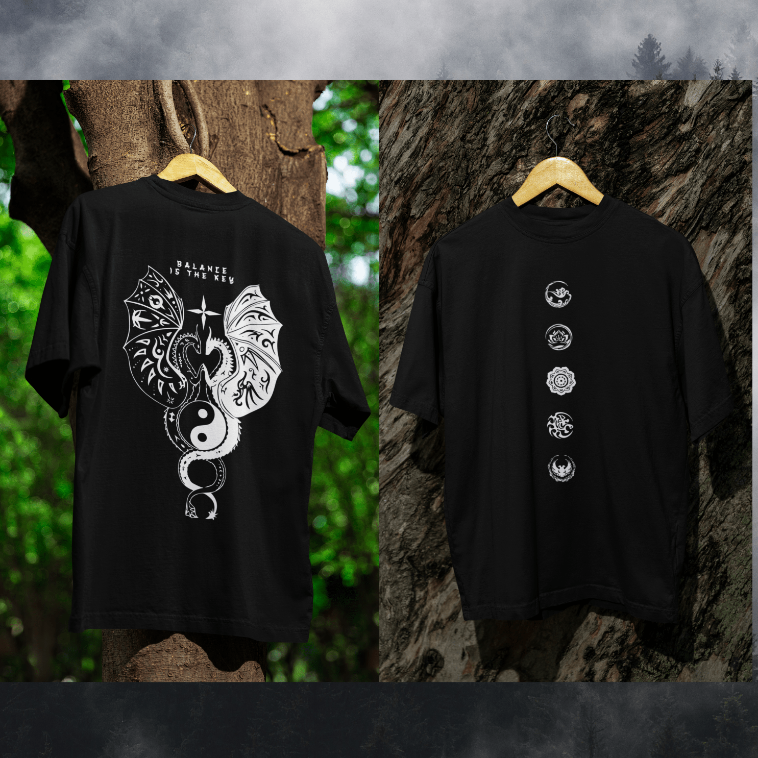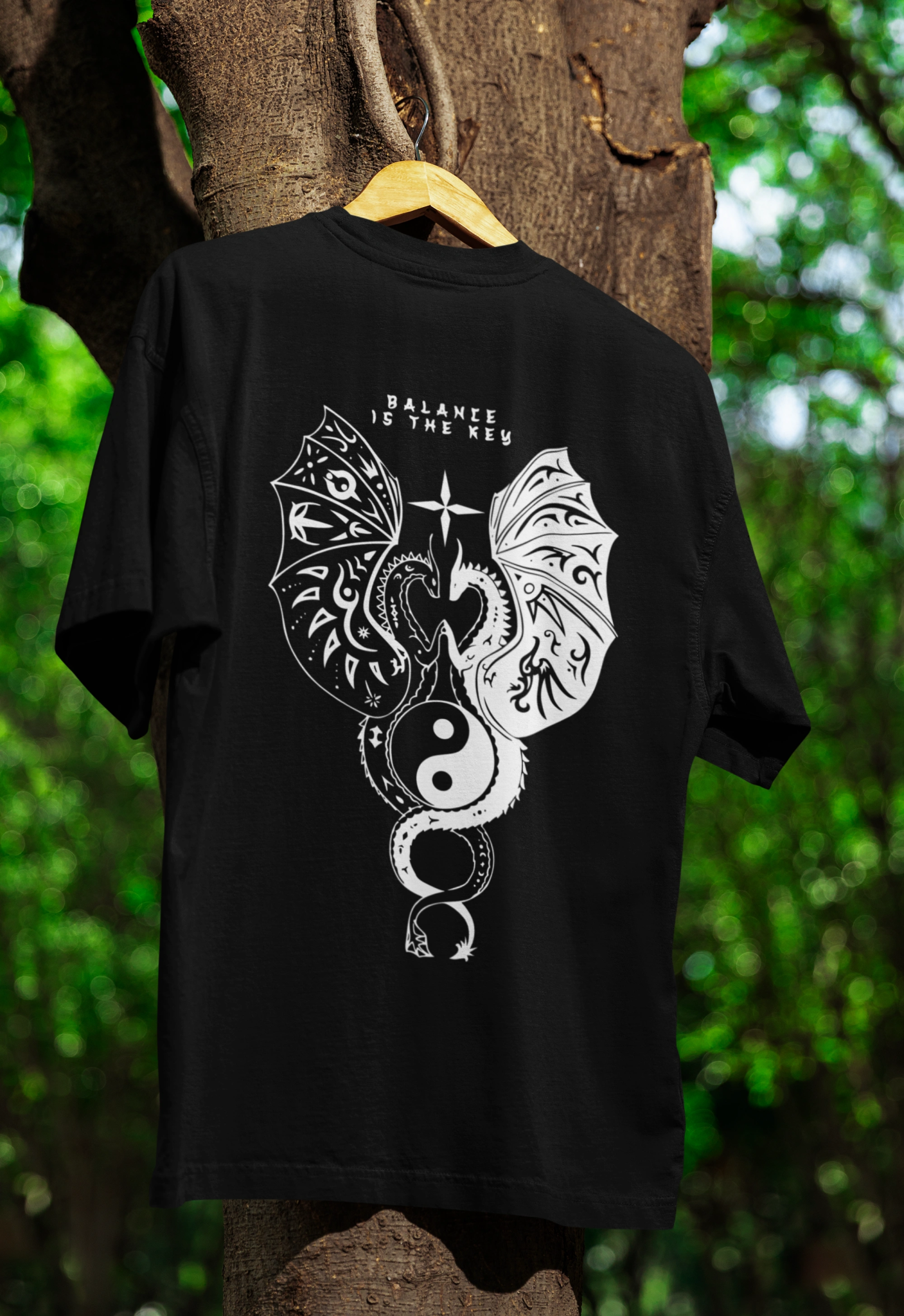 Ficka Men Black Printed Drop Shoulder Loose Fit Cotton T-Shirt