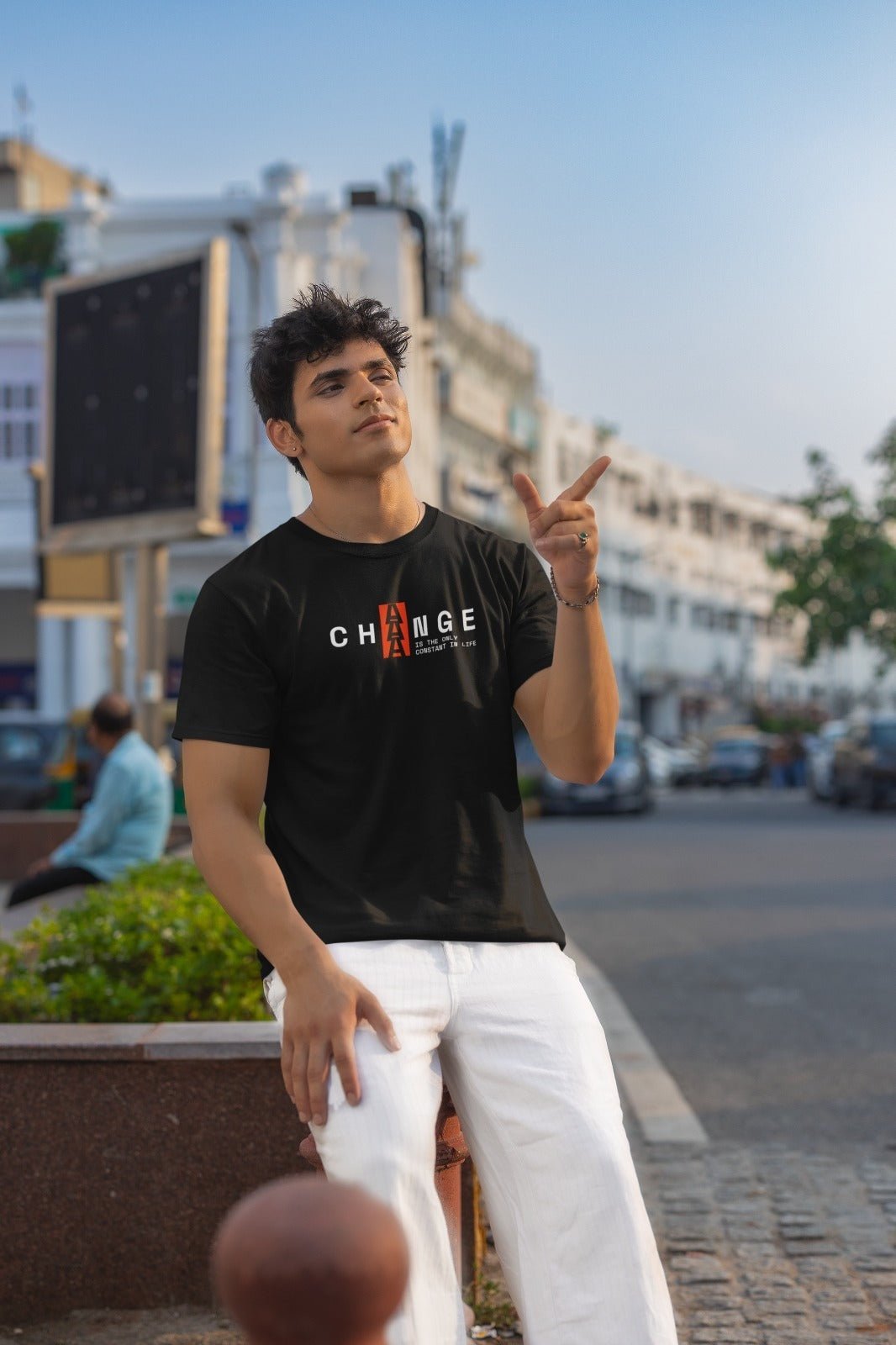 Upgrade your wardrobe with Ficka’s latest cotton printed t-shirt for men. Designed for those who value both comfort and style, this tee is made from premium cotton fabric that’s soft, breathable, and built to last. Featuring a trendy, eye-catching print on a classic black background, it’s the perfect addition to any casual outfit. The round neck design ensures a comfortable fit, while the sizes range from M to XXL, so you can find the ideal fit for your body type.